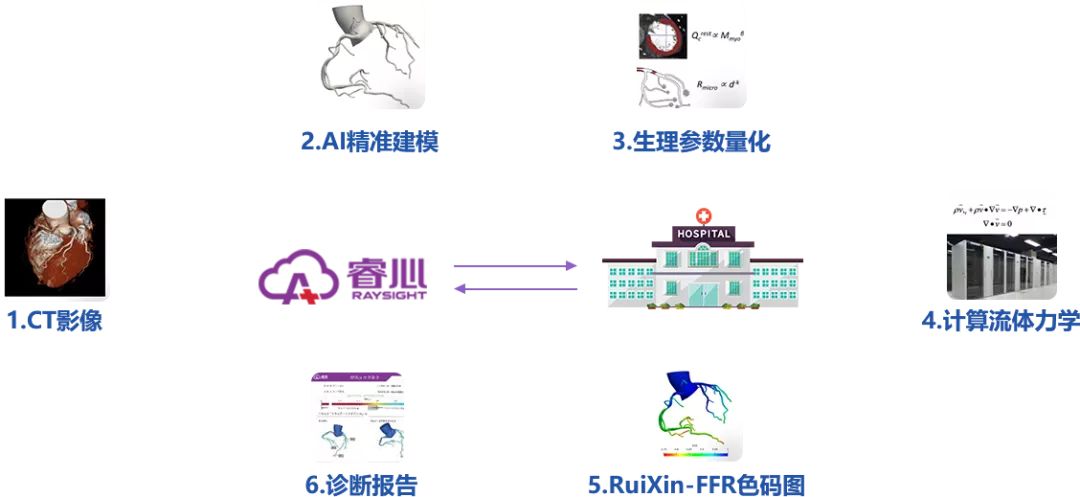 睿心分?jǐn)?shù)(Ruixin-FFR),是一款無創(chuàng)冠脈血流儲備分?jǐn)?shù)評估平臺,基于冠狀CT血管影像計(jì)算獲得CT血流儲備分?jǐn)?shù),在行冠脈造影前,輔助醫(yī)生評估穩(wěn)定性冠心病患者的功能性心肌缺血癥狀。僅需無創(chuàng)CTA DICOM,即可對患者冠脈供血情況進(jìn)行評估。