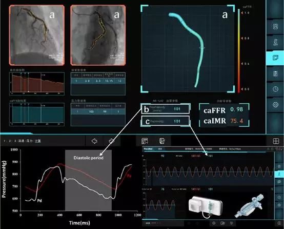 FlashAngio caFFR System(caFFR),是一個(gè)冠狀動(dòng)脈血流儲備分?jǐn)?shù)(FFR)評估系統(tǒng),基于冠狀動(dòng)脈血管造影的影像計(jì)算冠狀動(dòng)脈造影血流儲備分?jǐn)?shù),在不使用壓力導(dǎo)絲的情況下,實(shí)現(xiàn)對冠脈血管狹窄病變出FFR值的評估,基于常規(guī)的造影圖像進(jìn)行血管三維重建,通過專用壓力傳感器實(shí)時(shí)采集主動(dòng)脈壓力,利用優(yōu)化計(jì)算機(jī)流體力學(xué)算法實(shí)時(shí)計(jì)算FFR值,可用于術(shù)前診斷、術(shù)中指導(dǎo)和術(shù)后評估。