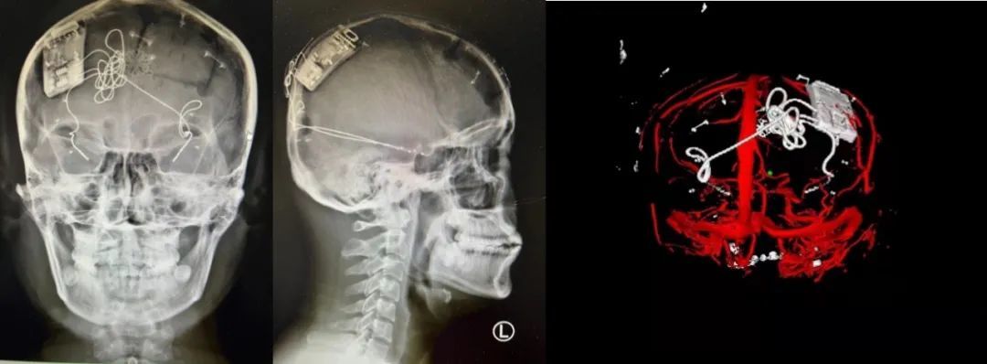 本次手術(shù)過程順利,術(shù)中刺激器各項(xiàng)指標(biāo)均工作正常,術(shù)后重建顯示電極位置精準(zhǔn),腦電信號清晰?;颊邽槟行?,入院后診斷為雙側(cè)顳葉癲癇,此類癲癇為開顱手術(shù)的相對禁忌癥,在藥物無法控制的情況下,傳統(tǒng)治療效果欠佳 。