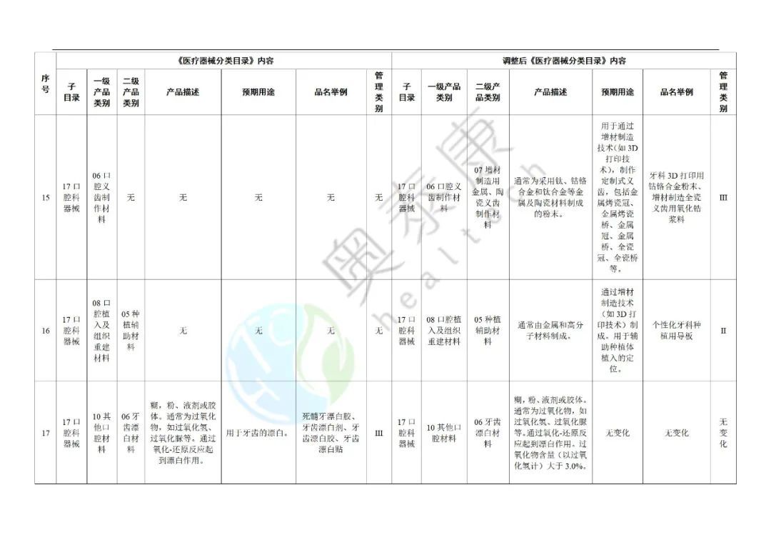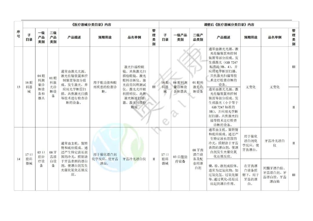 為進一步深化醫(yī)療器械審評審批制度改革,依據(jù)醫(yī)療器械產(chǎn)業(yè)發(fā)展和監(jiān)管工作實際,按照《醫(yī)療器械監(jiān)督管理條例》《醫(yī)療器械分類目錄動態(tài)調(diào)整工作程序》有關(guān)要求,國家藥監(jiān)局決定對《醫(yī)療器械分類目錄》部分內(nèi)容進行調(diào)整。現(xiàn)將有關(guān)事項公告如下: