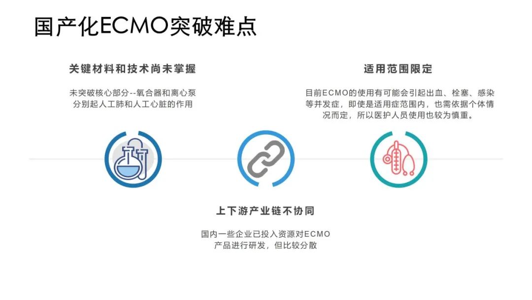 又稱“人工肺、葉克膜”,一種重要的體外生命支持技術,將患者的部分靜脈血從體內引到體外,經膜肺氧合后再由驅動泵將血液回輸體內,對嚴重循環(huán)、呼吸衰竭的病人進行有效支持,主要用于心臟功能不全、呼吸功能不全的支持,被譽為ICU里把守“生死之門”的最后一道防線,搶救新冠肺炎危重病人的“終極武器”,ECMO作為常規(guī)治療無效的危重型新冠肺炎患者的挽救性治療設備,是《新型冠狀病毒肺炎診療方案》中明確的治療措施,但受制于研發(fā)難、生產難、技術門檻高、臨床使用制約等多因素限制,國產企業(yè)無ECMO設備獲批上市,我國ECMO嚴重依賴進口,主要被美敦力(Medtronic)、理諾琺(LivaNova)和邁維柯(Maquet)三家壟斷。