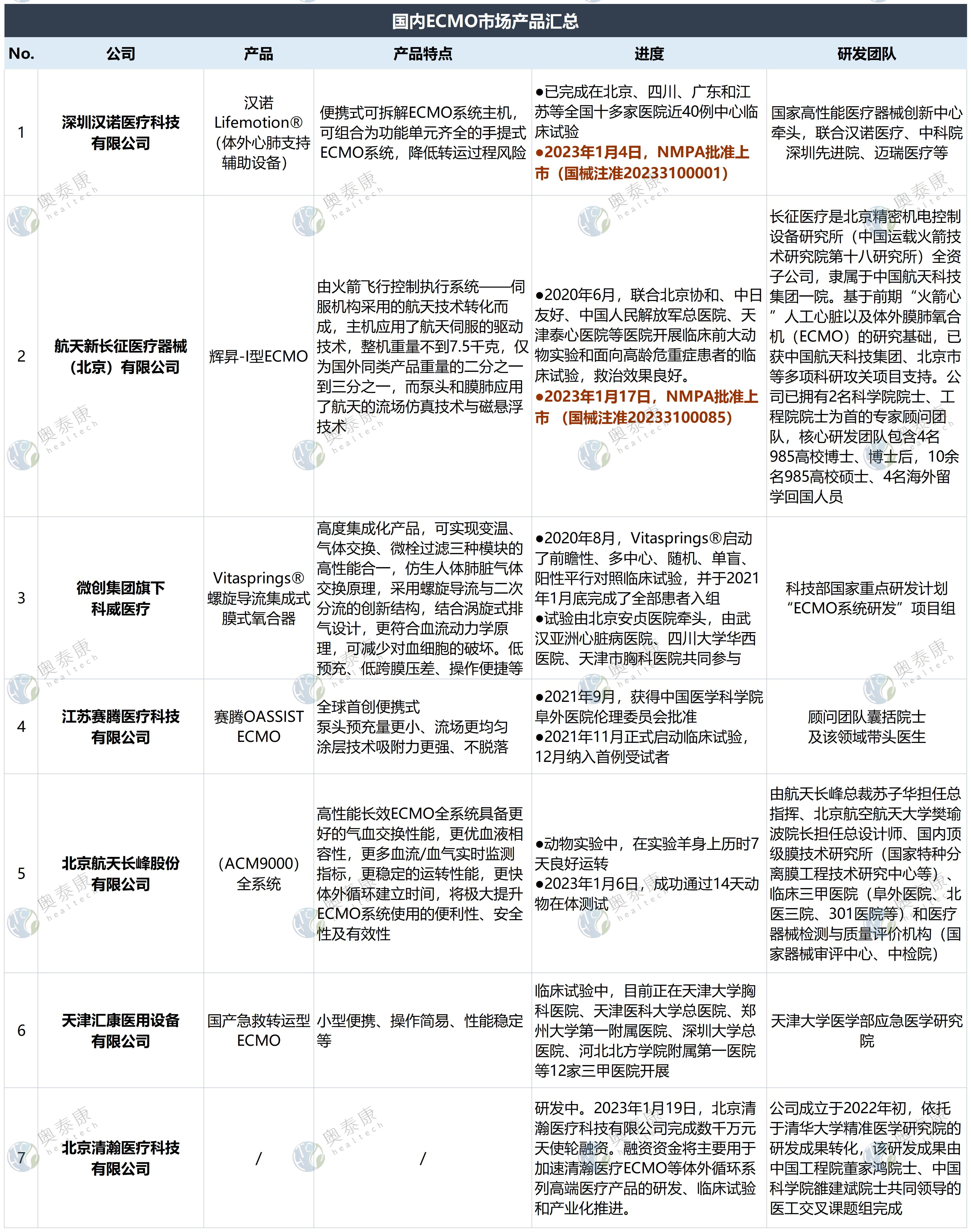 “2023年1月,國家藥監(jiān)局應急批準漢諾醫(yī)療(1.4日)和長征醫(yī)療(1.17日)的ECMO產品(體外肺/心肺支持輔助設備)上市,系國內首款和第二款獲批的國產ECMO設備,填補了國內空白。”