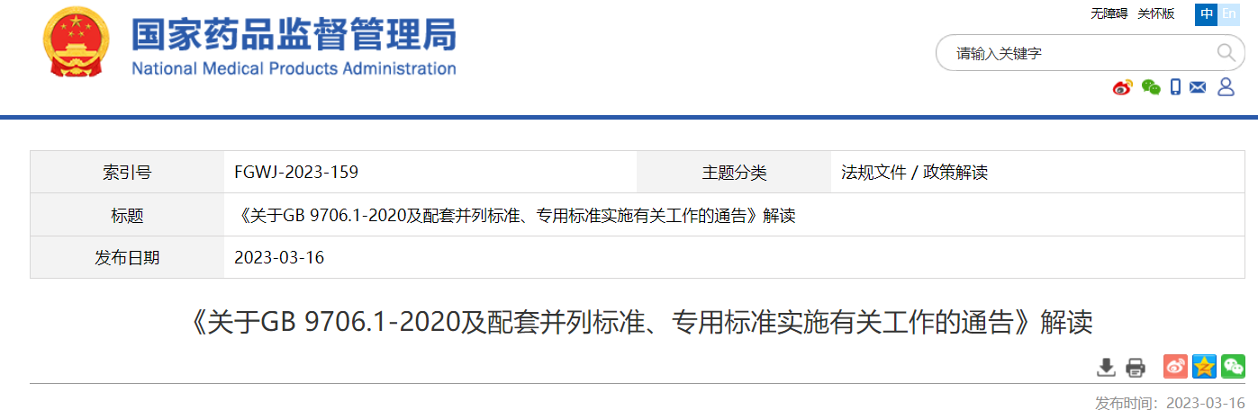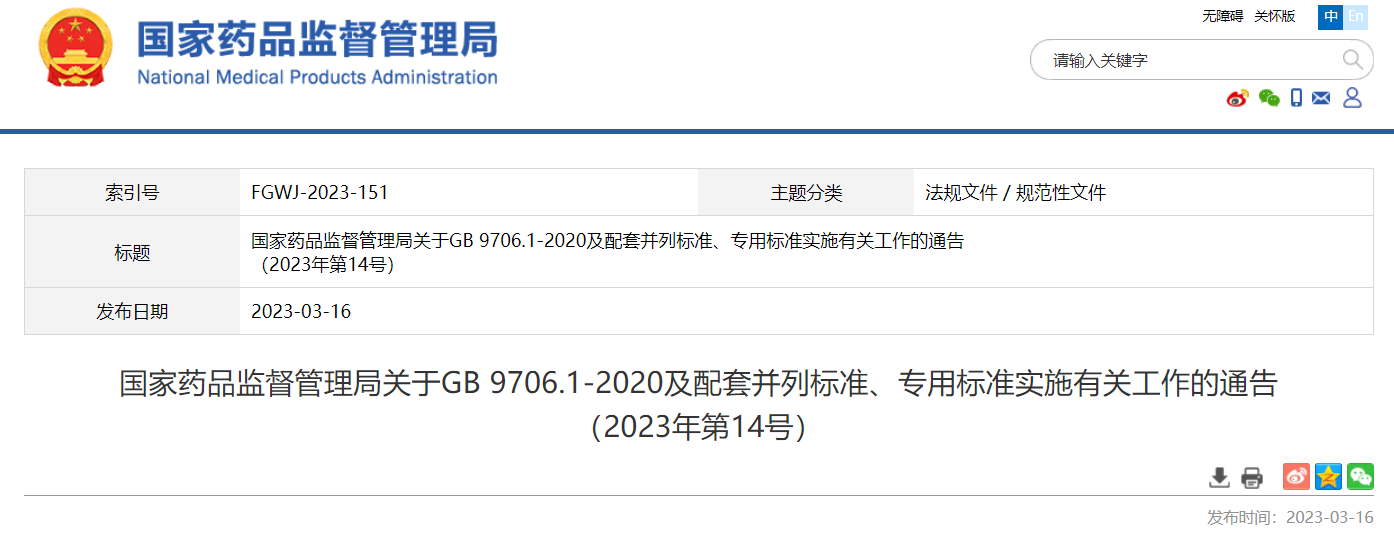關(guān)于GB 9706.1-2020及配套并列標(biāo)準(zhǔn)、專用標(biāo)準(zhǔn)實(shí)施有關(guān)工作的通告(2023年第14號(hào))及解讀