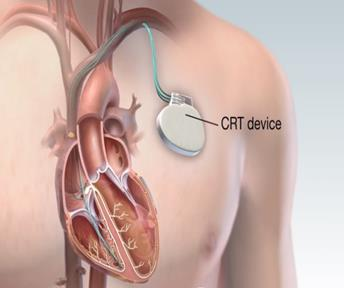 心臟再同步化治療,指雙心室起搏器,是通過雙心室同步起搏的方式,幫助心衰患者實現(xiàn)正常起搏的裝置。CRT包括一個口袋大小的脈沖發(fā)生器和三根電極導(dǎo)線,可被植入人體。通過監(jiān)測心律,在發(fā)現(xiàn)異常后,信號發(fā)生器發(fā)送電流脈沖,刺激心室重新同步,從而改善癥狀,提高患者的心臟泵血效率。目前有兩種類型的CRT裝置:植入式心臟再同步治療起搏器(CRT-P)和植入式心臟再同步治療除顫器(CRT-D)。主要區(qū)別在于后者除了改善心臟收縮同步性外,還具備除顫功能,能及時處理危及生命的室性心律失常,避免猝死。