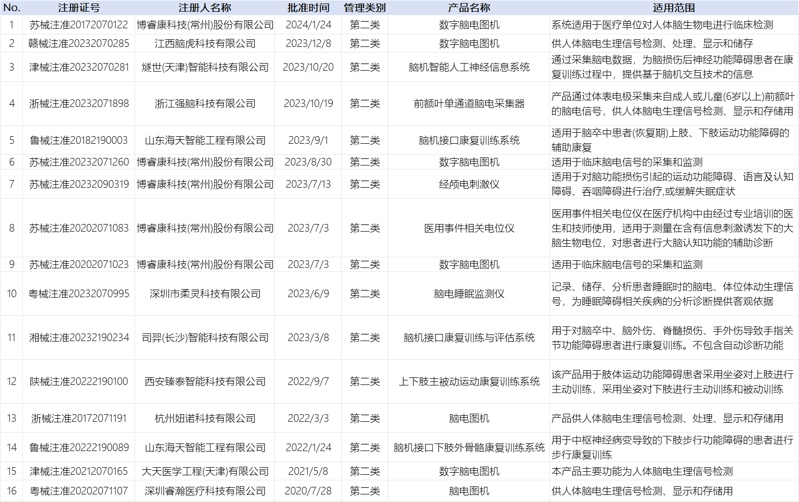 我國(guó)已獲批的二類腦機(jī)接口產(chǎn)品