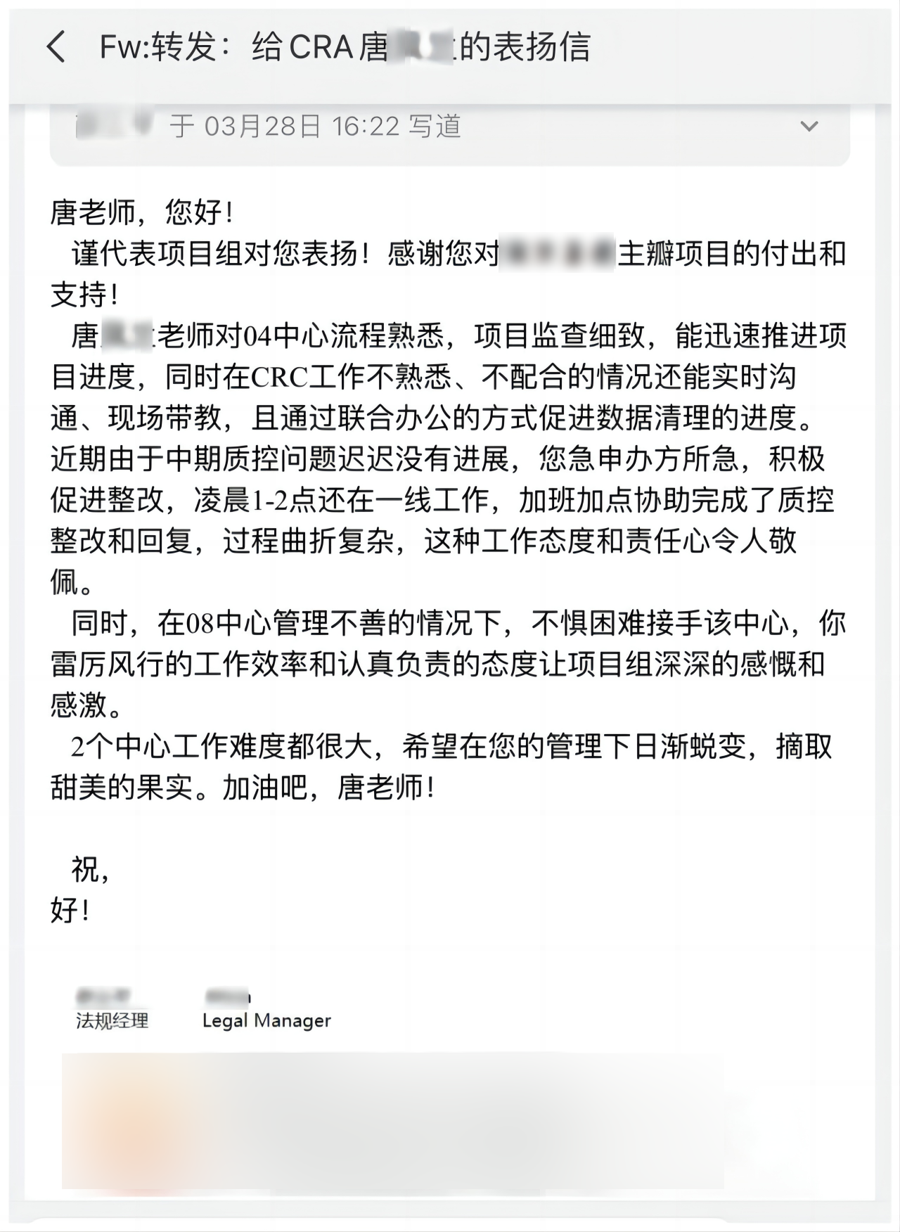 感謝你們在臨床試驗中全力以赴,高效執(zhí)行