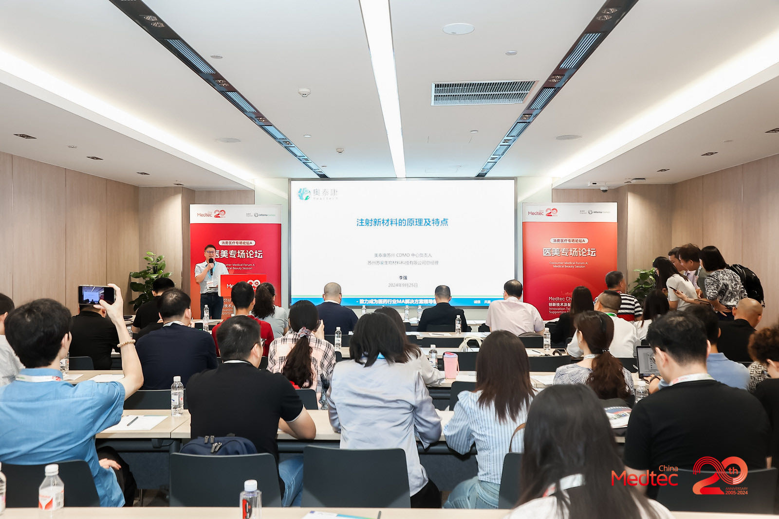 9月27日,上海世博展覽館,Medtec China 2024暨第十八屆國(guó)際醫(yī)療器械設(shè)計(jì)與制造技術(shù)展覽會(huì)落下帷幕,這一盛會(huì)匯集了來(lái)自全球各地的頂尖企業(yè)、科研機(jī)構(gòu)及行業(yè)專家。奧泰康作為參展商受邀參加會(huì)議,在醫(yī)美專場(chǎng)論壇中,奧泰康蘇州CDMO中心負(fù)責(zé)人、蘇州蘇豪生物材料科技有限公司總經(jīng)理李強(qiáng)以《注射新材料的原理及特點(diǎn)》為主題進(jìn)行分享,與行業(yè)伙伴共同探索醫(yī)療器械領(lǐng)域的最新趨勢(shì)與未來(lái)發(fā)展方向。