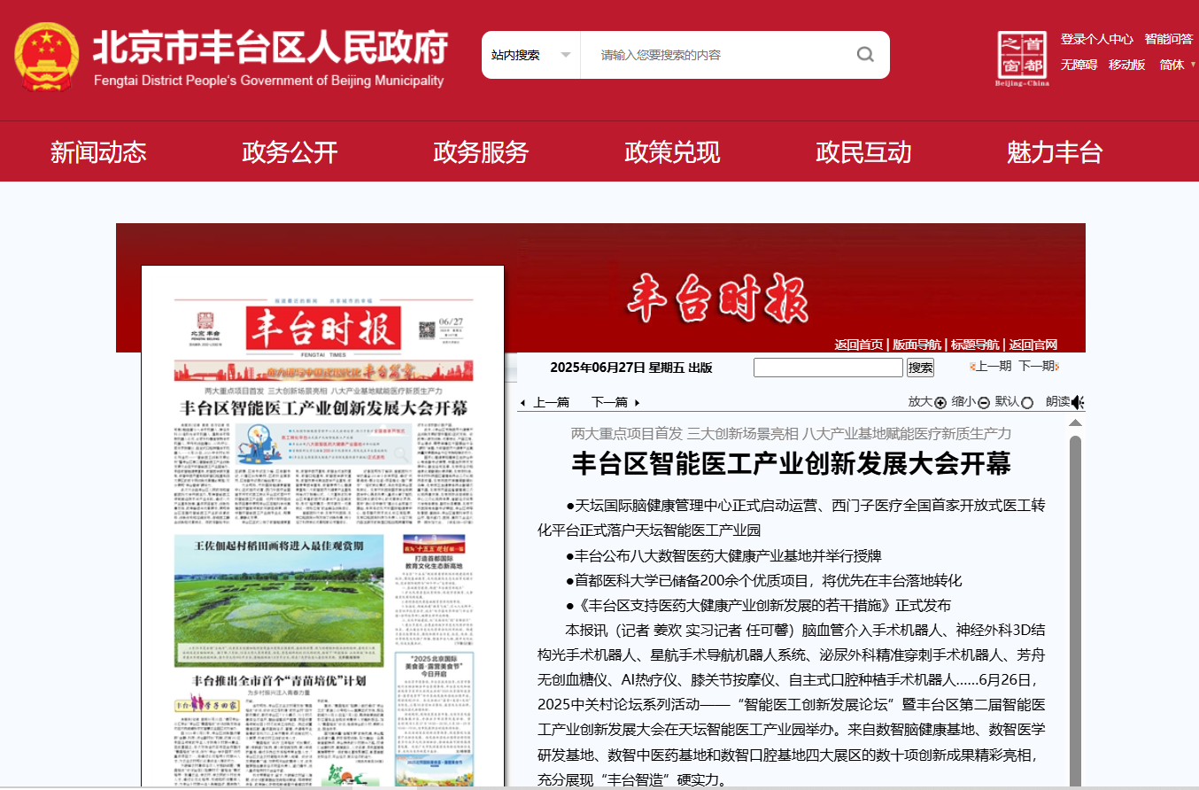 6月26日,由豐臺(tái)區(qū)人民政府、首都醫(yī)科大學(xué)舉辦的中關(guān)村論壇系列活動(dòng)“智能醫(yī)工創(chuàng)新發(fā)展論壇”暨豐臺(tái)區(qū)第二屆智能醫(yī)工產(chǎn)業(yè)創(chuàng)新發(fā)展大會(huì)在北京順利舉辦,此次大會(huì)聚焦智能醫(yī)工領(lǐng)域前沿技術(shù)與產(chǎn)業(yè)實(shí)踐,通過(guò)八大產(chǎn)業(yè)基地授牌、重點(diǎn)項(xiàng)目首發(fā)、創(chuàng)新場(chǎng)景發(fā)布、政策解讀與成果展示,展現(xiàn)豐臺(tái)區(qū)在推動(dòng)智能醫(yī)工產(chǎn)業(yè)的資源優(yōu)勢(shì)、創(chuàng)新優(yōu)勢(shì)和空間優(yōu)勢(shì),促進(jìn)醫(yī)工融合創(chuàng)新和成果轉(zhuǎn)化。北京市政府副秘書長(zhǎng)王穎捷,區(qū)委書記王少峰,區(qū)委副書記、代理區(qū)長(zhǎng)張艷林,區(qū)政協(xié)主席李嵐,區(qū)委副書記蔣達(dá)峰,首席科學(xué)家毛山宏等領(lǐng)導(dǎo)出席會(huì)議。